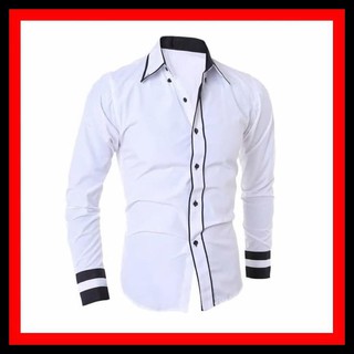 Baju Kemeja Pria Hem Slim Fit Hitam Putih Model Terbaru